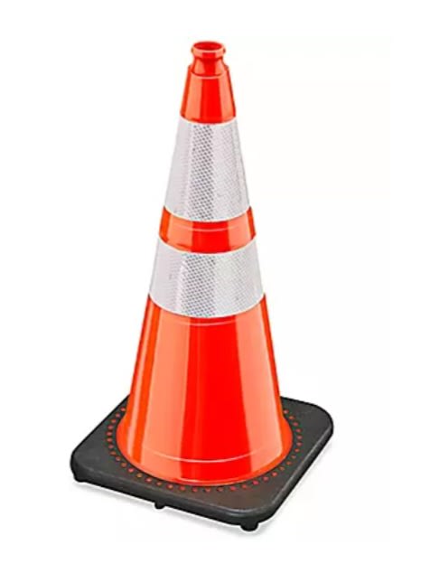 Each 28" cone is reflective and has a black base made of PVC for impact and corrosion-resistance. Cones have a 4" and 6" high intensity reflective tape that increases cone visibility for evening and low-light settings. These 28" traffic cones are great markers to provide extra awareness and safety for your event.