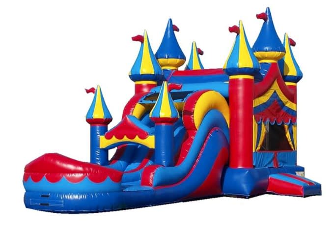 Guests of all ages will love this 2 Lane Carnival castle Combo! This is a large party inflatable with a slide, bounce area, as well an inside hoop for added fun! The Carnival Castle Scheme and vibrant colors are eye-catching, and the double-lane slide provides hours of entertainment, whether you choose to use it wet or dry! Your party will be the most commented and unforgivable experience and your friends and family will love it. Book now before it's gone.