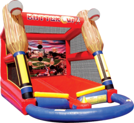 The Batter Up Baseball Game lets your guests feel like they are in the big leagues! Players can step up to the plate and take part in batting practice as they hit baseballs into an enclosed "outfield." The back wall has strategic holes for guests to take a hit. The Batter Up inflatable game is sure to be a hit!
