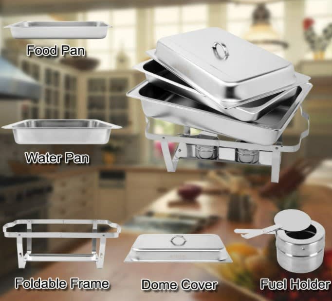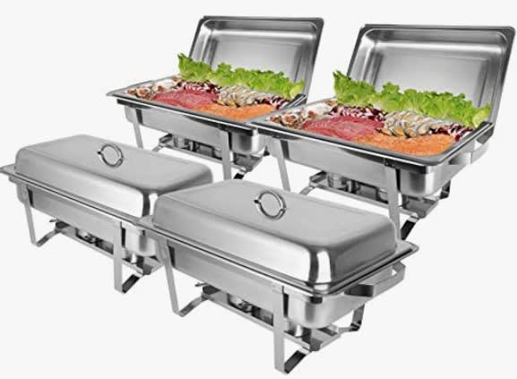 Finishing Touch to your Event! Keep your foods covered, warm and ready to serve. Each large capacity chafing dish is 8-quarts that perfectly accommodates large events, parties and family gatherings. 2-Chafing Dishes
